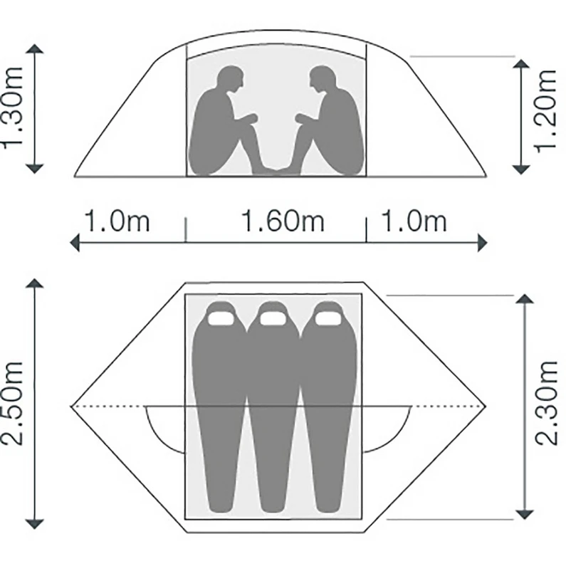 Mooie en lichte 3-persoonstent voor 3-seizoenen trektochten met veel ruimte dankzij de speciale stokkenconstructie