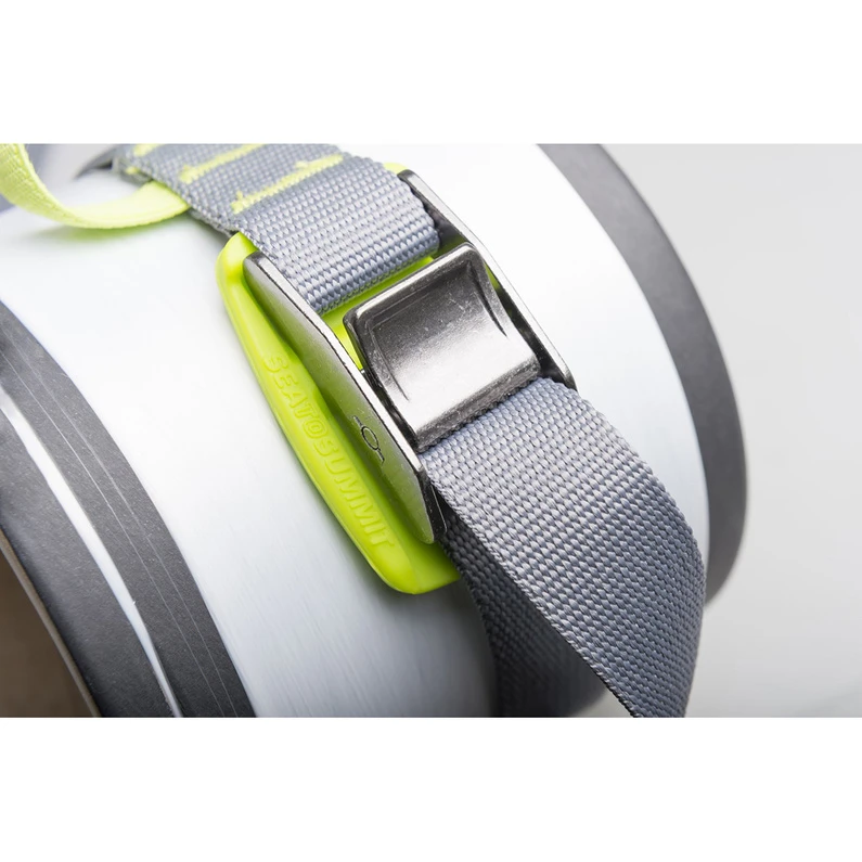 Hightech spanriem met hoog draagvermogen, een UV-stabiele riemband en nikkel-gesp met silicone bescherming – inclusief rubbberband voor een veilige opslag